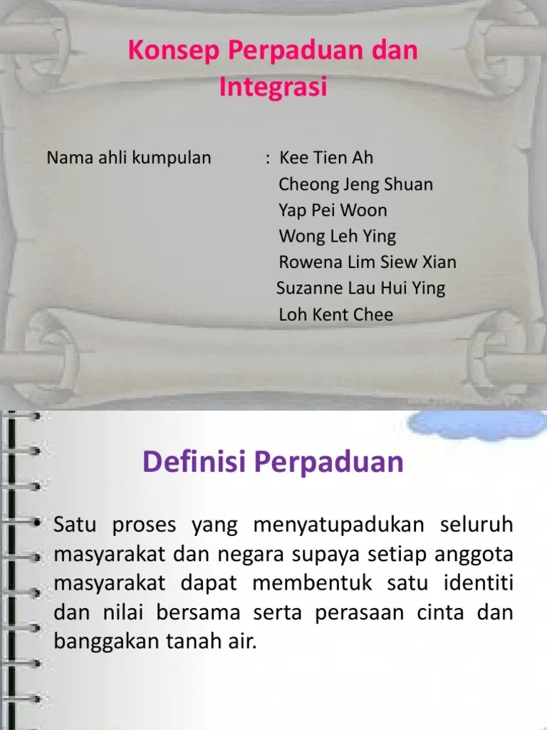 Maksud perpaduan dan integrasi perpaduan ialah suatu proses penyatuan daripada semua aspek seperti fizikal, sosial, ekonomi dan politik. 7.1, perpaduan dan integrasi nasional. Proses perpaduan dan pembinaan bangsa malaysia. Konsep integrasi • proses menyatupadukan berbagai kelompok masyarakat dengan menghilangkan . Elemen ini menjadi asas kekuatan negara kita yang terdiri daripada rakyat berbilang kaum.
